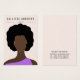 This earring display card is the perfect way to stylise your packaging and add your own personal flair and personality. It depicts an artsy hand-drawn fashion illustration of a black hair woman with an afro and a violet purple shirt with earring holes placed perfectly over her ears so that you can make it look like she's wearing your earrings. The background is a simple earthy ivory tone with speckles. (contact designer for colour changes) On the back, it includes contact information that can be changed completely or personalised to your details. It's a professional, cool, unique, girly, and trendy way to display your product with pride. (earring holes are printed markers only, puncturing must be completed by the customer)
