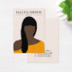 This earring and necklace combination display card is the perfect way to stylise your packaging and add your own personal flair and personality. It depicts an artsy hand-drawn fashion illustration of a black long-haired woman with bangs and a mango yellow shirt with earring holes placed perfectly over her ears so that you can make it look like she's wearing your earrings. The background is a simple earthy ivory tone with speckles. (contact designer for colour changes) On the back, it includes contact information that can be changed completely or personalised to your details. It's a professional, cool, unique, girly, and trendy way to display your product with pride. (earring holes and necklace lines are printed markers only, puncturing and cutting must be completed by the customer)