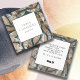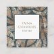 An earthy boho style business card design with muted brown and charcoal grey hues with a central nameplate. Earthy falling leaves.