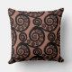 Earthy Bronze & Black Fern Frond Swirl Cushion