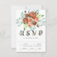 Earthy Burnt Orange Rose Terracotta Floral Wedding RSVP Card