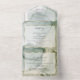 All in One Wedding - Chic earthy splash of alcohol ink stains in shades of muted greens and golds - each section highlighted with a sheer white overlay framed in gilded gold for an ethereal appeal a beautiful modern abstract design for an all in one wedding invitation complete with pre-addressed detachable meal choice rsvp for your guests to easily mail back - a stunning all in one wedding invitation - Easy to customise template.