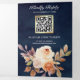 Earthy Ivory Floral Navy Blue QR Code Wedding Tri-Fold Invitation