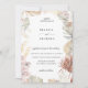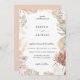 Beautiful watercolor jungle flowers and foliage in chic earthy colour palette of linen pink, silver sage, ivory white, rustic orange and sandy beige. Card features elements of orchids, roses, pampas grass, lilies and palm fronds. Back of card shown in pink linen can be customised.
