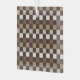 A checkerboard pattern with alternating dark brown, light brown, and beige squares, creating a sense of rhythm and visual depth.