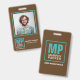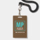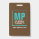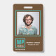 Earthy Natural Brown Turquoise Monogram Logo Photo ID Badge