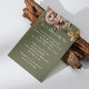 Share key wedding info with this elegant accommodations and details card, designed in a muted olive green with soft watercolor florals in warm earthy tones. The front offers space for hotel, venue, and more, while the back features a QR code for easy guest access to your wedding website, RSVP form, or registry. The earthy olive green background adds a sophisticated, natural look - perfect for rustic, boho, or modern garden weddings. A stylish and practical addition to your invitation suite.