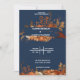 Earthy Orange Roses Floral Navy Blue Wedding Invitation