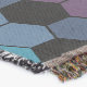 A quality printed throw has its advantages. This is a much finer weave throw than its loopier cousins, and though lighter, it is worth the investment for custom room accessorizing. The back is much prettier than the typical brown, and the fringe on the long sides very vivid, the selvage nicely done. Before photographing, I washed the throw in cold water, delicate, with a thicker woven throw the same size. On tumble dry low, this throw was dry in half the time as the other. This is a very practical quality if you use throws for furniture covers or to wrap up in frequently. The sleekness of the fabric makes it a great layer for accenting or protecting without the feeling of sitting on too much stuff. Perfect for napping or when you feel a light chill coming on. The color printing is beautiful and on this fabric, matched the design and color of my Photoshop image. This is an advantage for blending room fabrics and colors. The fringe on the short sides prints the colors from the design image and therefore varies from the side fringe. I streaked a white fractal line through the plaid pattern to give the illusion of weaving. This printed as crisp as an illusory thread, and put some white in the short side fringe, showing another advantage of print vs loomed- for artistic purposes, line lines, detail, and color integrity can be planned and preserved. My loomed throws have color limitations and more of a needlepoint texture. Print throws reproduce an exact image. The throw felt a little stiff straight out of the package, but this went away in the first delicate wash. Of course I searched the wash water for ink or bleeding and there was none.