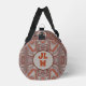 A Boho Chic Duffel Bag with a natural abstact design of earthy red burnt sienna and grey. Two different unique patterns on the sides and ends. Personalise one end with a Monogram or 2 or 3 Initials within a highlighting circle.