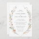 The invitation showcases a delicate floral wreath, beautifully composed of watercolor wildflowers and greenery. This enchanting arrangement captures the essence of a rustic meadow, adding a touch of natural elegance to your wedding details.