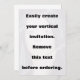 Easily create your own vertical invitation. Change image with your own photo. Customise it if you want to change text, font size and colour and make your own invitation. Vertical orientation but you can easily make it horizontal.