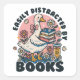 This charming sticker features a whimsical white goose carrying a stack of books, surrounded by a field of daisies and a cozy iced coffee. With the playful phrase "Easily Distracted by Books" and a soft pastel pink color palette, this design is the perfect accessory for any bibliophile, librarian, or student.