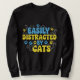 Bright and whimsical, the Easily Distracted by Cats design features playful cat faces, tails, and paw prints. Perfect for anyone who admits cats steal their attention every time.