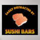 Easily Distracted By Sushi Bars. This funny sushi lover accessory is a great sushi lover gift for a man, woman, girls, boys, teens & kids who love to eat sushi & sashimi at Japanese restaurants, and love wasabi, ginger and soy sauce. If you love Japanese food, and eating tuna maki rolls and nigiri sushi with vinegared rice, this sushi lover accessory is for you!