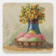 Antique Easter Basket with Coloured Eggs and an Easter Bouquet - This is a sweet antique illustration of an easter basket, easter eggs, and an easter bouquet is a beautiful old fashioned easter greeting. The easter egg image is based on a 1910 postcard, and is a real vintage Easter image. The Easter Basket is beautiful -- full of bright shiny new Easter Eggs, and the Spring Easter Bouquet has gorgeous yellow Spring flowers sitting in a bright blue vase. The colours are soft and pastel, just like a Spring Greeting should be!