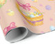 A Pastel Pink Wrapping Paper Patterned In Easter Baskets, Lambs, And Rabbits For Easter Gifts
