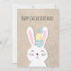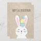 Tender pastel colours and spring palette create holiday mood and cartoon bunny makes this design cute.