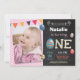 Easter Birthday Invitation with custom photo. Girl Easter Egg First Bday Invitation. Egg Hunt. Chalkboard Blue and White Chevron Background. 1st First Birthday. Printable Digital. For further customisation, please click the "Customise it" button and use our design tool to modify this template.