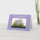 The symbol of the Easter egg represents new life. This beautiful religious Christian card wishes the newness of life through the Risen Lord. An Easter egg is painted with the spring flowers that are seen in the background of the image. Lavender textured background sets off the beauty.