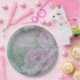 Paper dinner plates matching other Zazzle Products to help you bring your luncheon or dinner together with a theme, by using digital software using pastel colours and pink peonies that surround the right side of the paper plates.