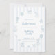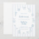 This vintage-inspired Easter brunch invitation features delicate blue line art bunnies, florals, and decorative Easter egg illustrations set against soft striped detailing.