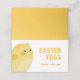 Easter tent card featuring a cute watercolour baby chicken in yellow. Customisable product for a memorable celebration. Perfect for an Easter party, Easter Egg Hunt, Easter Picnic or Easter Brunch. Or for a birthday party or school event.