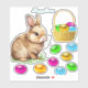 Cute Easter bunny with a basket of colourful Easter eggs. Text can be personalised. Bunnies symbolise abundance, longevity and good fortune!