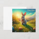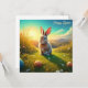 A cute Easter bunny sits in the middle of a blooming spring meadow, surrounded by colourful Easter eggs and bright flowers. The warm sun bathes the scene in a golden light, while gentle hills in the background create an idyllic atmosphere. A picture full of spring magic and Easter joy!