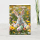 Personalised Easter bunny Easter card with an inside colouring page. Cute bunny sitting in grass full of flowers and Easter Eggs.