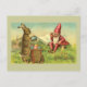 Easter Bunny And Gnome Vintage Greeting Holiday Postcard