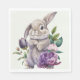 A Cute Paper Napkin Designed With A Baby Bunny With Purple And Pink Peonies Flowers