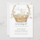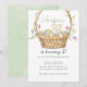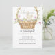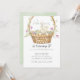Birthday invitation featuring a watercolor bunny in a basket with tulips and eggs.