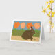 This cute bunny is guilty of eating the garden plants. Brown bunny in front of the green hedge with tulips and sky in the background. The image looks like hand-painted paper. Use for Spring Equinox, March equinox, the first day of spring, Easter, Vernal Equinox, and mother earth. Brown, peach, green, brown, and pink. Inside: Blank