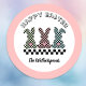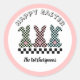 Easter Bunny Checkerboard Pink Green Teal Monogram Classic Round Sticker