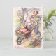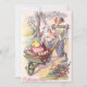 This spring send someone an Easter greeting! This vintage print depicts Easter bunny, Easter chick, Easter coloured egg, rooster, and wheelbarrow.