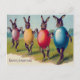 This spring send someone an Easter greeting! This vintage print depicts Easter bunnies in coloured Easter Egg costumes.