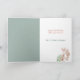 On the front of this pretty Easter season card is a white bunny carrying a bouquet of spring coral pink flowers. The matching coral pink text says "Happy Easter". The inside of the card has two custom text fields and a another image of bunnies with flowers at their feet. Pretty for the Easter season. All the text is easily changed to anything you'd like.