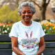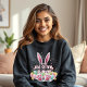 This delightful Easter shirt features adorable bunny ears and feet, surrounded by colourful Easter eggs and festive confetti. The text "I'm the Grandmother Bunny" can be personalised for any family member, making it perfect for creating a fun matching set. Ideal for Easter celebrations, egg hunts, or family photos, this shirt is a great gift for grandparents, parents, children, and siblings to share the holiday spirit!