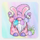 This design features a gnome dressed as the Easter Bunny with easter eggs in pastel watercolor rainbow colours. Happy Easter 🐣