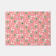 A cute illustration of a golden retriever dog wearing bunny ears and a cute Easter bandanna. Surrounded by decorated Easter eggs, spring flowers and butterflies.