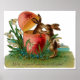 Vintage Easter greeting with Easter egg and two bunnies rubbing noses. Cute funny love retro Victorian nature landscape floral animal romantic fine art.