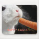Easter bunny whiskery face trying to decide whether to eat the carrot or not