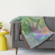 A quality printed throw has its advantages. This is a much finer weave throw than its loopier cousins, and though lighter, it is worth the investment for custom room accessorizing. The back is much prettier than the typical brown, and the fringe on the long sides very vivid, the selvage nicely done. Before photographing, I washed the throw in cold water, delicate, with a thicker woven throw the same size. On tumble dry low, this throw was dry in half the time as the other. This is a very practical quality if you use throws for furniture covers or to wrap up in frequently. The sleekness of the fabric makes it a great layer for accenting or protecting without the feeling of sitting on too much stuff. Perfect for napping or when you feel a light chill coming on. The color printing is beautiful and on this fabric, matched the design and color of my Photoshop image. This is an advantage for blending room fabrics and colors. The fringe on the short sides prints the colors from the design image and therefore varies from the side fringe. I streaked a white fractal line through the plaid pattern to give the illusion of weaving. This printed as crisp as an illusory thread, and put some white in the short side fringe, showing another advantage of print vs loomed- for artistic purposes, line lines, detail, and color integrity can be planned and preserved. My loomed throws have color limitations and more of a needlepoint texture. Print throws reproduce an exact image. The throw felt a little stiff straight out of the package, but this went away in the first delicate wash. Of course I searched the wash water for ink or bleeding and there was none.