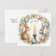 Easter Bunny Pink Blue Candle Illustration Holiday Card