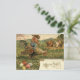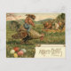 Easter Bunny Rooster Coloured Egg Riding Holiday Postcard