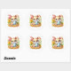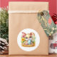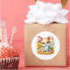 Round sticker is shown with a cute Easter bunny art print.
