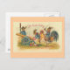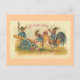 Easter bunnies in red and blue military uniforms; one armed with a pussy willow spear, one riding a chicken and brandishing a sword, another loading coloured eggs into a cannon. Inscription reads An Easter Greeting.