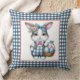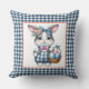 Easter Bunny with Basket of Eggs on Blue Gingham Cushion