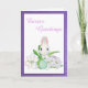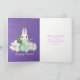 This Easter card has a white Easter bunny in the midst of Easter lilies surrounded by a faux glitter border in purple . Front text reads " Easter Greetings". Inside reads "Wishing you heartfelt joy and happiness during this season of celebration." Inside left is a faux purple glitter with same bunny image and "Happy Easter" in white fancy script beneath bunny/flowers image. Other text is light orchid [purple-pink] over white.